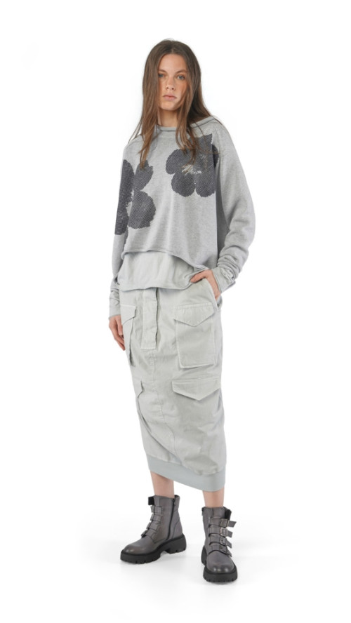 • RUNDHOLZ Short Linen Knit Sweater With Placed Flock Print-Light Grey Dark Greyflock