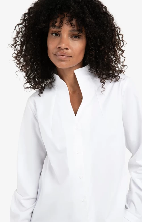 • YAYA Blouse with high V-neck collar and cuffs-Pure White