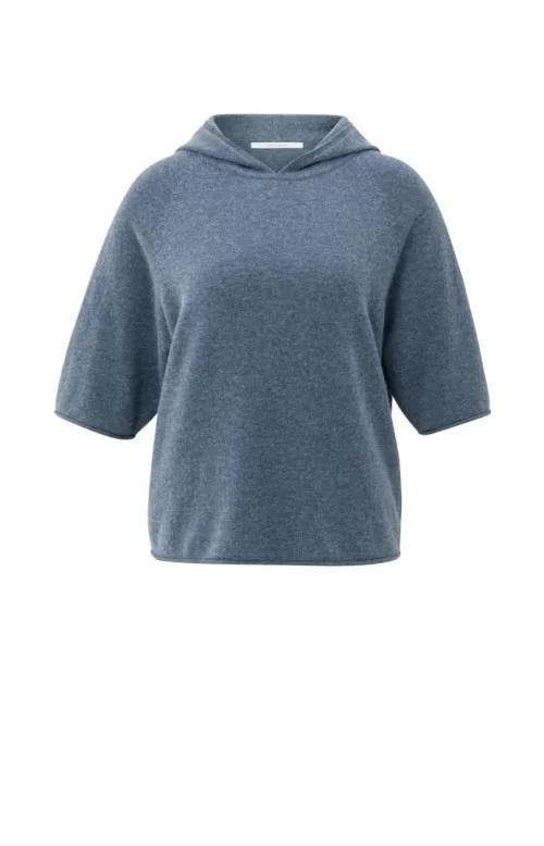 YAYA Knitted hoodie with short sleeves-China Blue