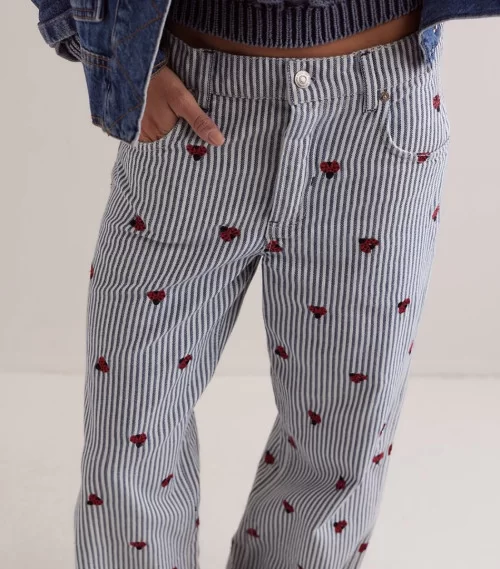 FREE PEOPLE We The Free Level Up Stripe Slim Flare Jeans-Faded Railroad