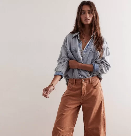 FREE PEOPLE We The Free Good Luck Mid-Rise Barrel Jeans-Ginger Root