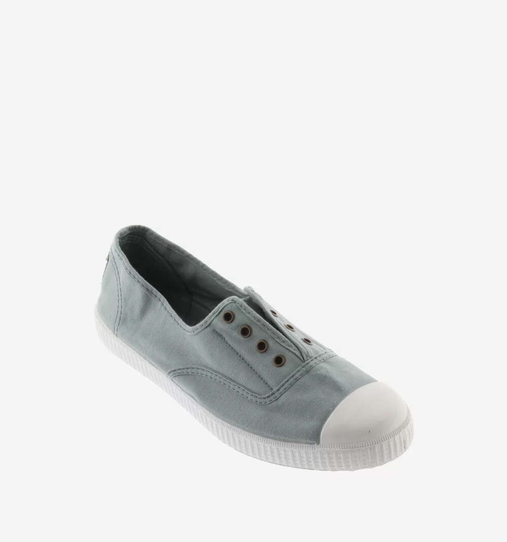 • Women’s slip-on canvas shoes made in a unique combination of DREC® (Dyeable Recycled Eco Cotton) and organic cotton cultivated, spun and woven in Spain. They represent a step towards sustainability. The vulcanised natural rubber sole provides durability, while the rubber reinforcement at the toe adds additional strength. The slip-on design is complemented by a soft stretch on the upper and includes a removable inner insole for greater comfort.